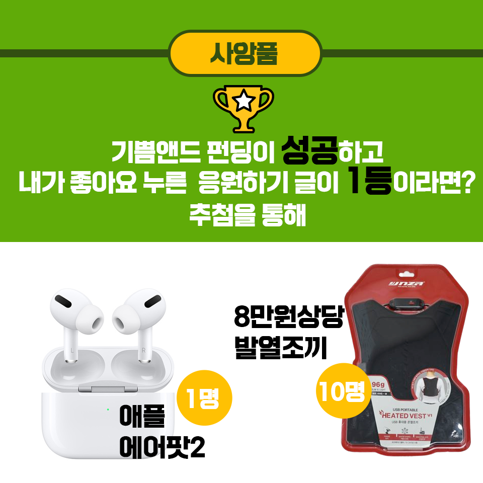기쁨앤드에서 응원하고 댓글달기만 하면 모두 드립니다. 공지사항 2019-11-22 18:27:00 지금 (주)기쁨앤드 페이지 확인하기 > https://otrade.co/funding/373 [이벤트] 펀딩이 성공하면 3만원이 내손에! 펀딩 응원해서 마스크 팩도 얻으세요. 단, 한달간!제주도 항공 티켓 쏜다!![당첨자 발표! 2019-12-13 22:52] 목록