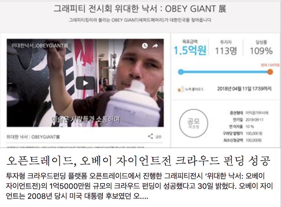 오픈 스타트업 소식 오픈트레이드-오베이자이언트展 국내 최초 전시 크라우드 펀딩 성공