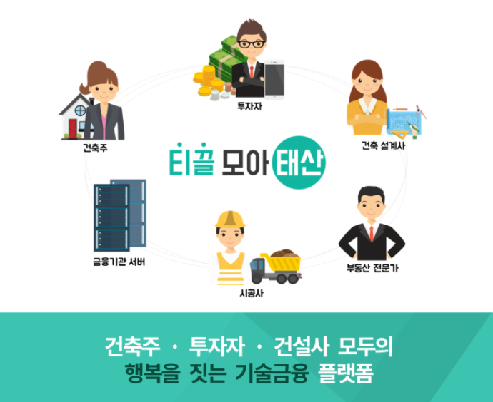크라우드펀딩을 통해 투자 유치에 나서는 티스퀘어의 자사 플랫폼서비스 ‘티끌모아태산’은 건축자금 전문 P2P금융 플랫폼으로 좀 더 투명하게 , 좀 더 간편하게 ‘행복을 짓는 기술금융’을 목표로 하고 있습니다.