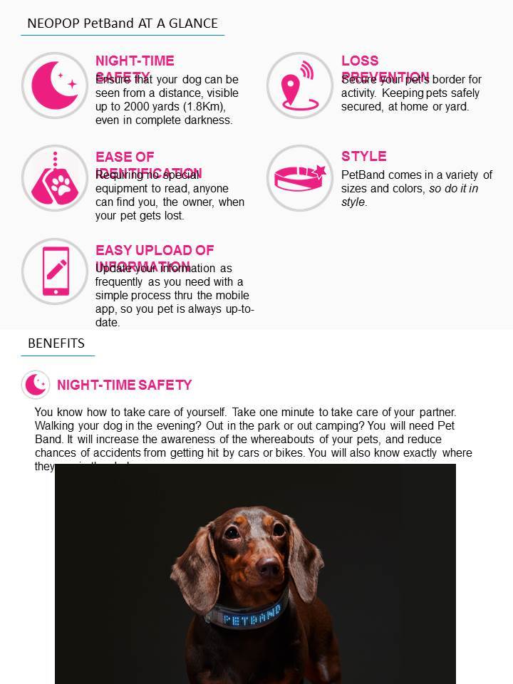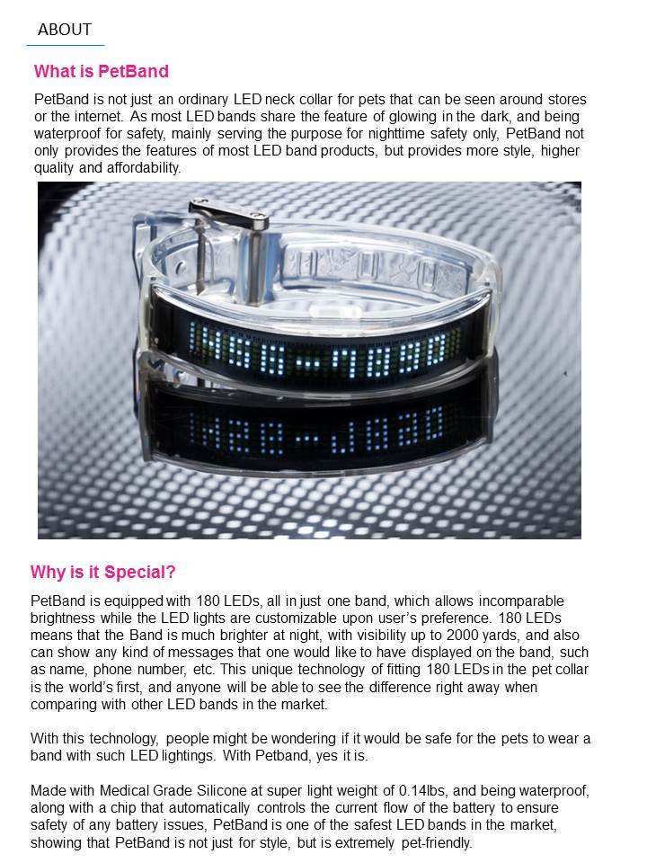네오팝의 ‘내 반려견을 위한 LED 인식표’ PetBand의 혁신성과 메리트를 보여주는 단적인 자료입니다.