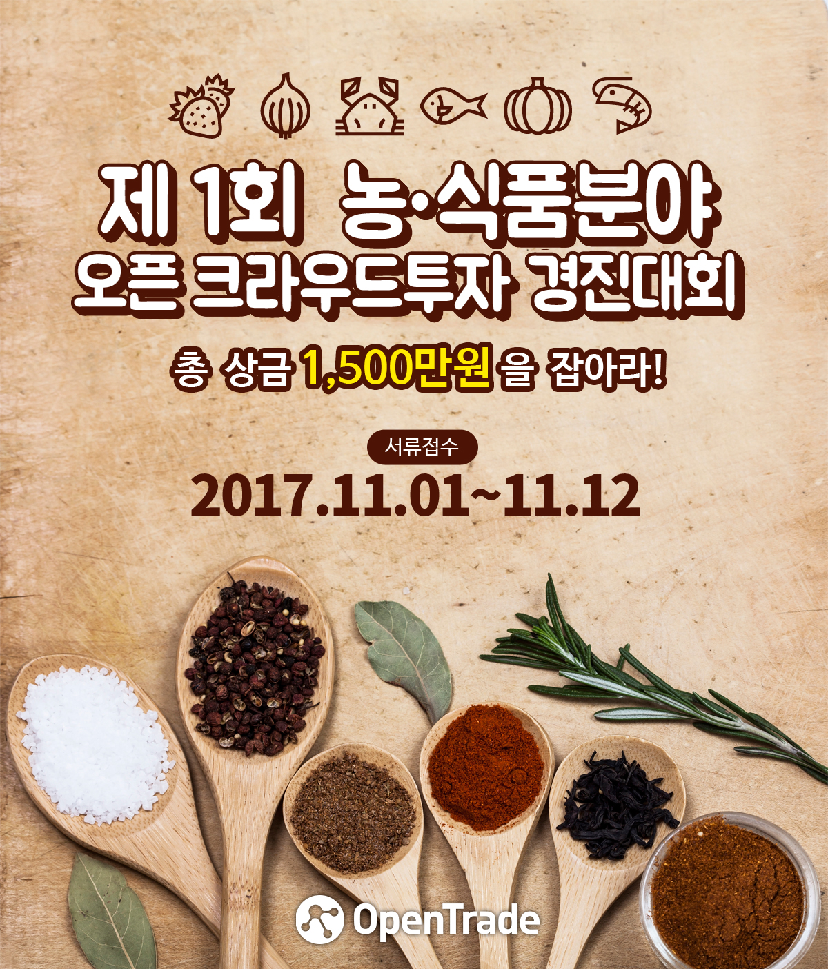 대한민국 대표 크라우드투자 플랫폼 오픈트레이드가 우수한 비즈니스모델. 훌륭한 인재, 실행력 등 성공에 필요한 요소는 다 갖추고 있는데 오로지 ‘돈’만 없는 Food Tech분야의 혁신 창업가들의 투자 지원을 위하여 1,500만원의 상금을 걸고 경진대회를 준비했습니다.