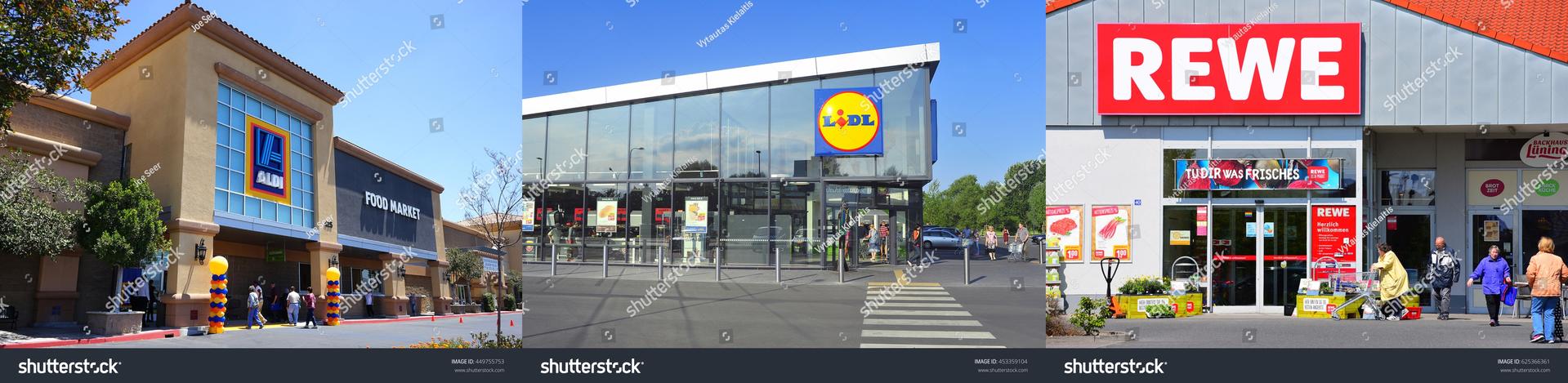 왼쪽부터 독일 최대 슈퍼마켓 유통 채널 ALDI, LIDL, REWE 외관 모습(출처: Shutterstock)