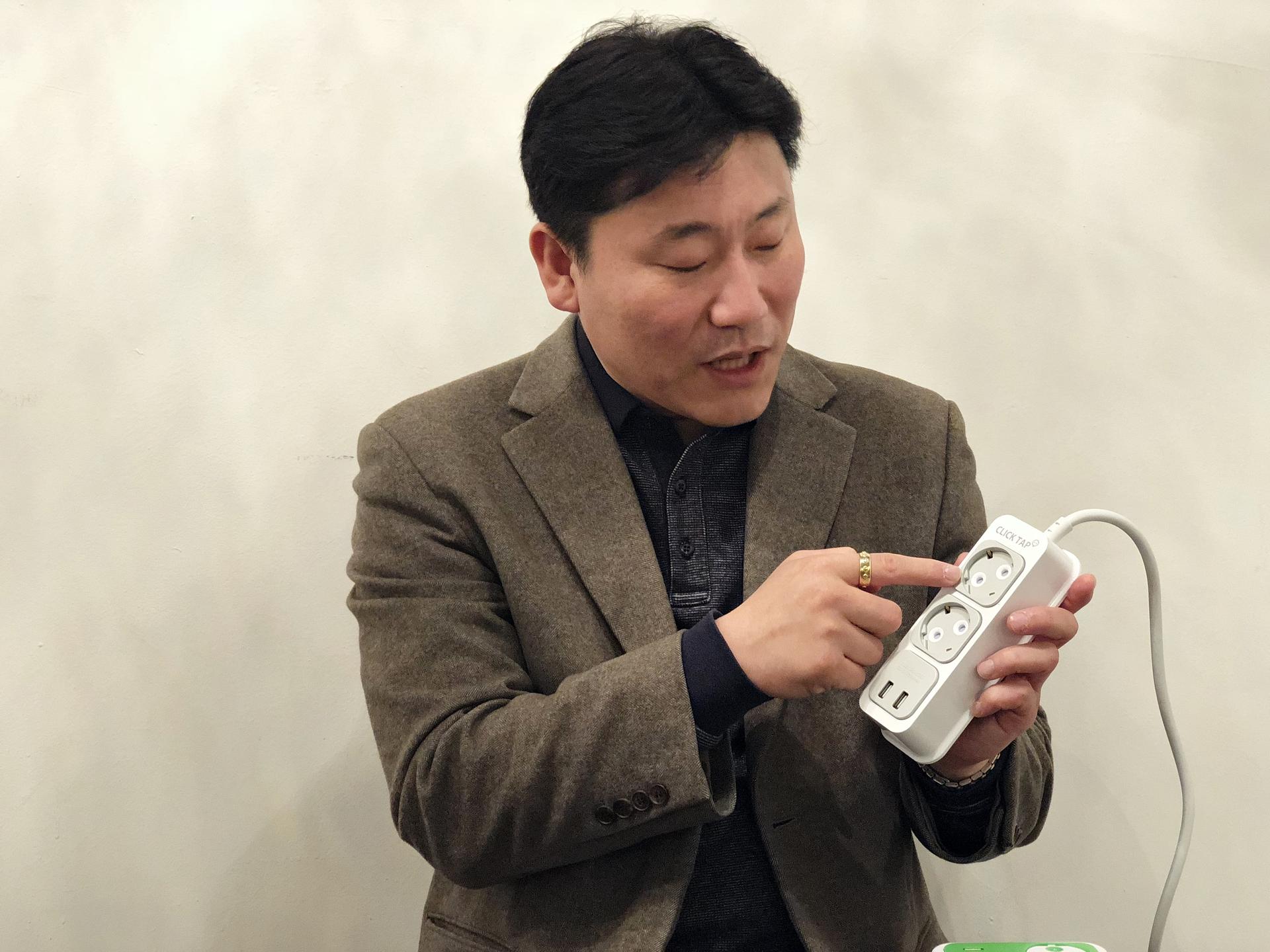부엉이 콘센트에 대해 설명 중인 신헌수 대표
