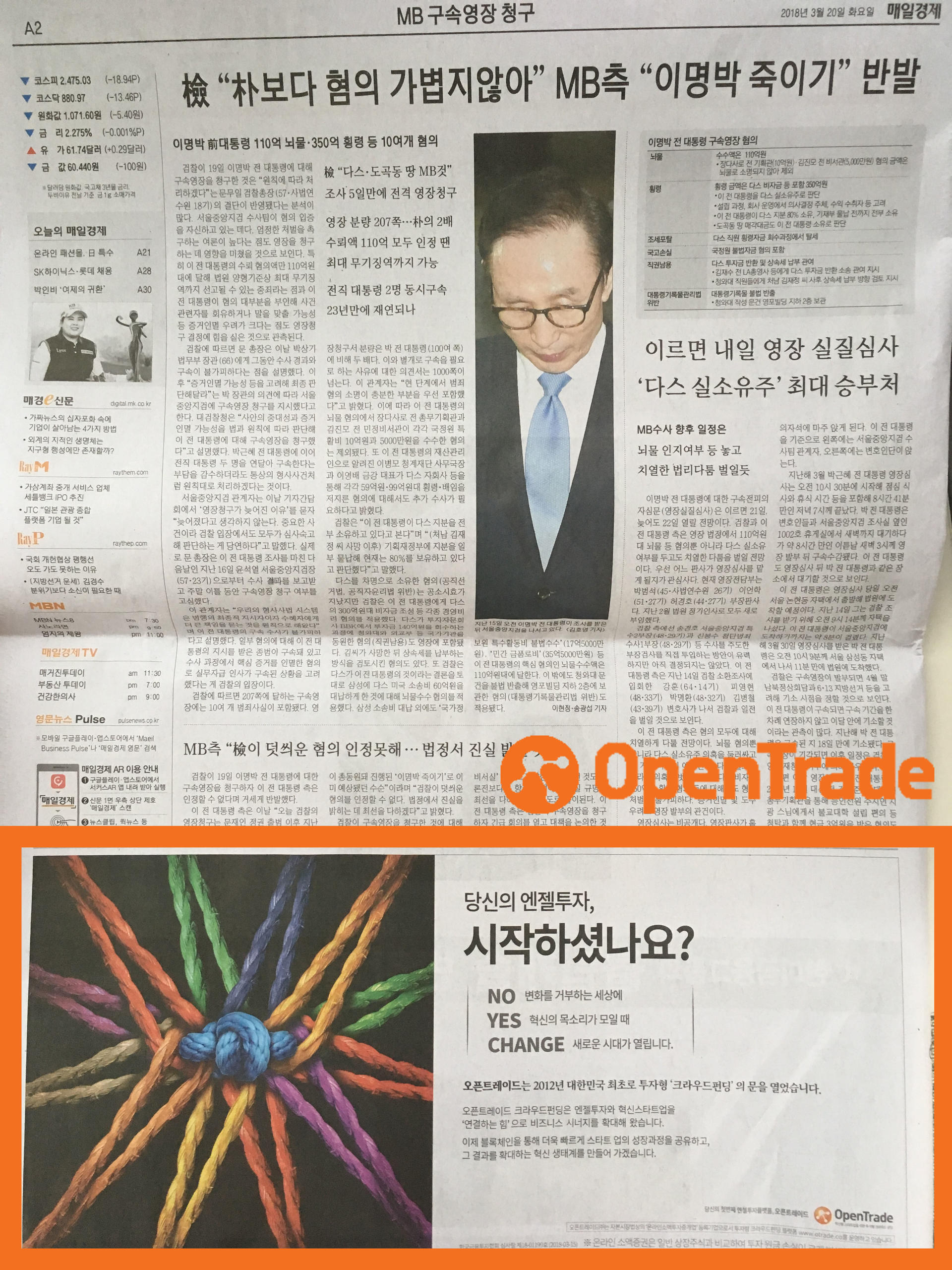 3월 20일, 매일경제 2면에 ‘오픈트레이드’ 광고가 실렸습니다!(짝!짝!짝!)