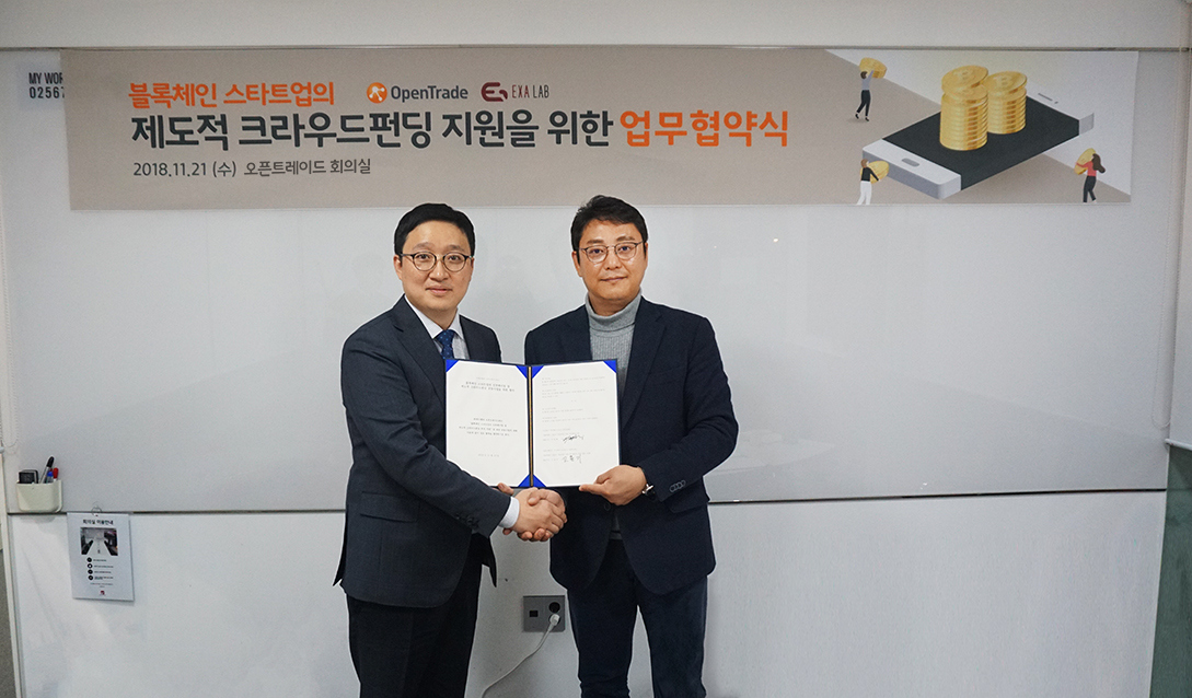 오픈트레이드, 엑사랩과 블록체인 스타트업의 제도적 크라우드펀딩 지원을 위한 업무협약 체결