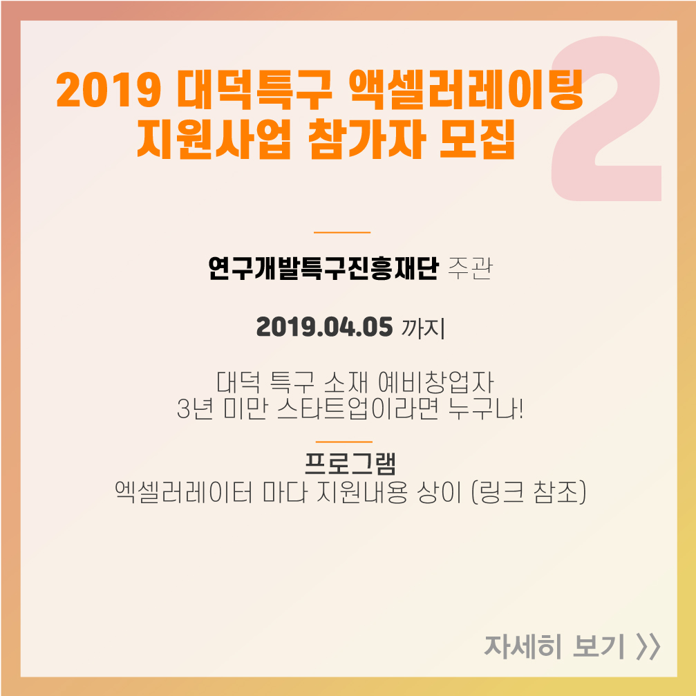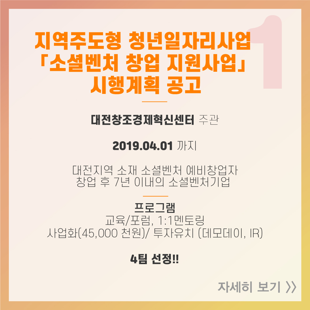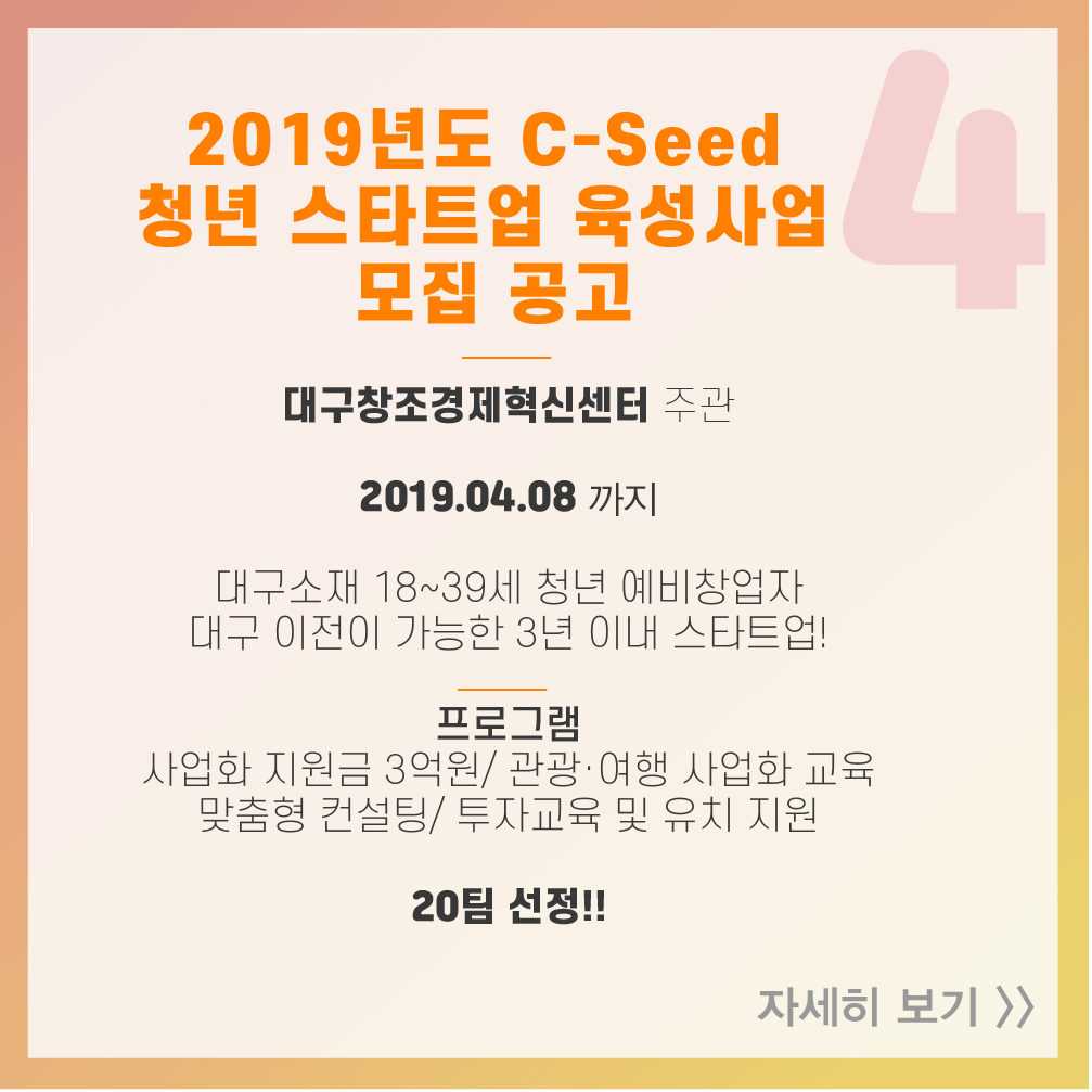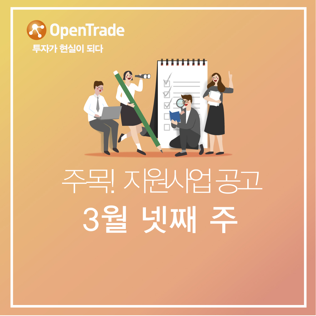 [스타트업 지원 프로그램] 2019년 3월 넷째 주, 창업지원사업공고 2019-03-26 16:04:49 안녕하세요. 오픈트레이드 입니다. 어느새 갑자기 성큼 다가온 봄이 느껴지는 3월 의 마지막 주 입니다. 오늘도 사업분야, 지역에 상관없이 스타트업에게 유용한 사업공고 및 설명회 소식들을 많은 분들이 쉽게 확인할 수 있도록 소개해드리겠습니다. 유용한 도움이 되길 바랍니다. [광주창조경제혁신센터 X 오픈트레이드] 뻔뻔한 크라우드펀딩 참가기업 모집 아는 만큼 돈이 되는 크라우드펀딩 팁 - 소득공제 목록