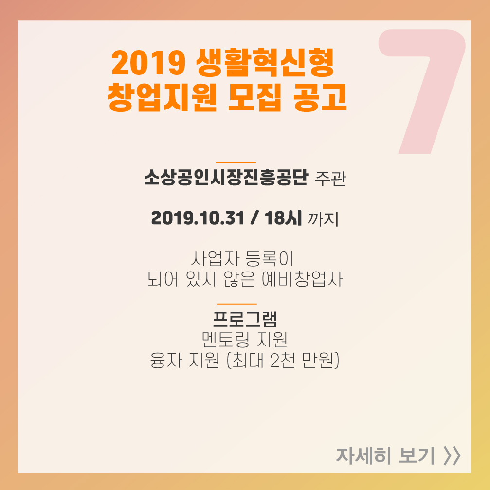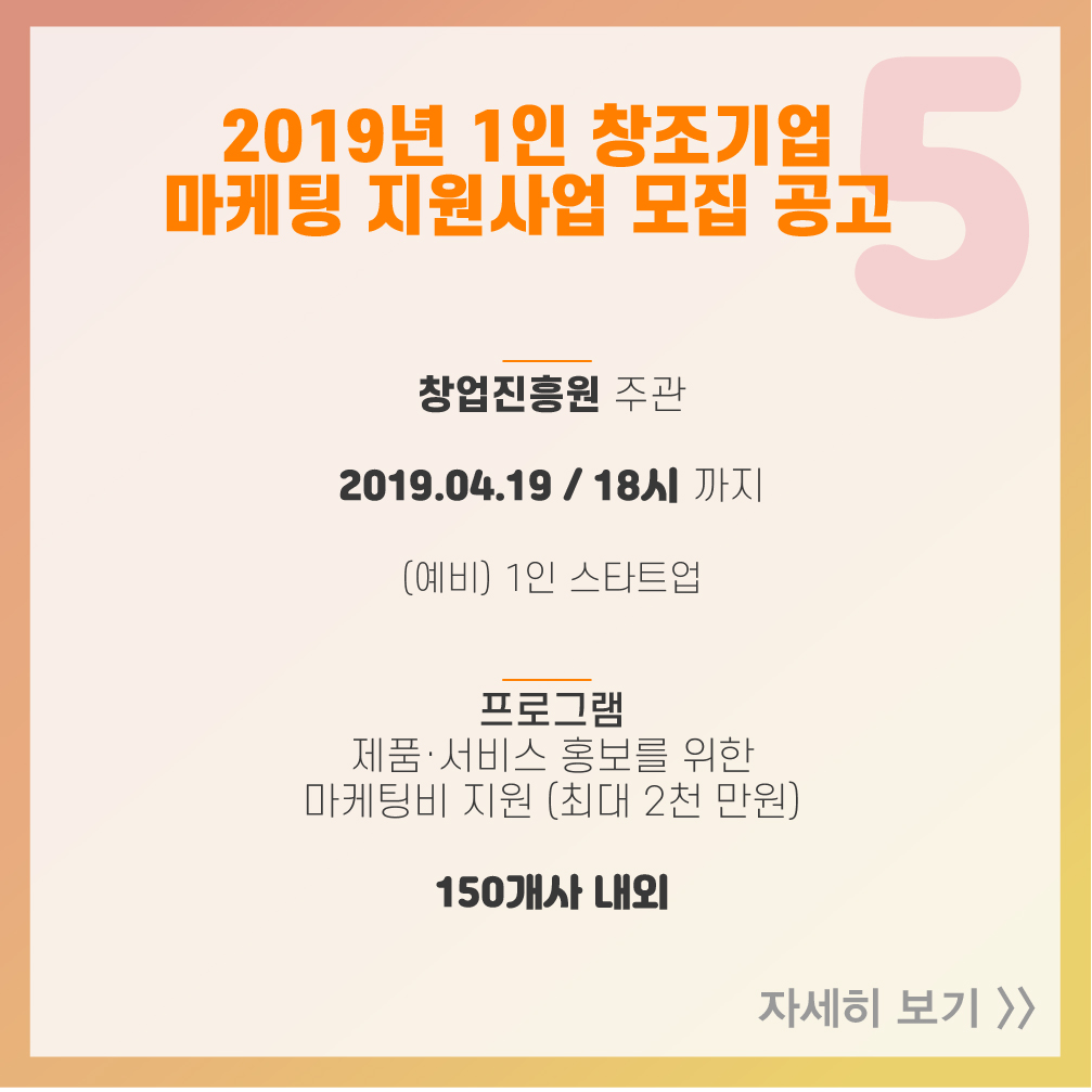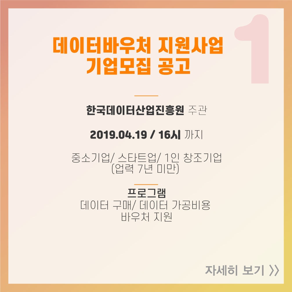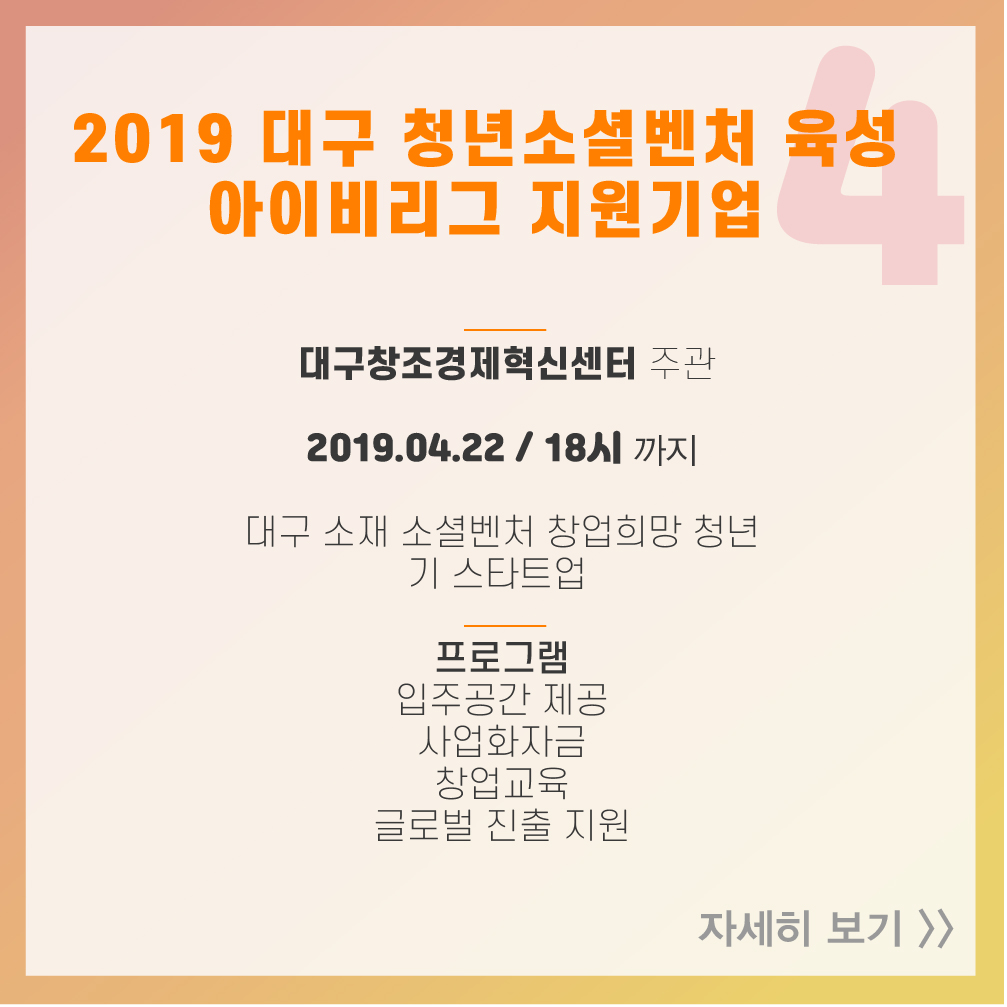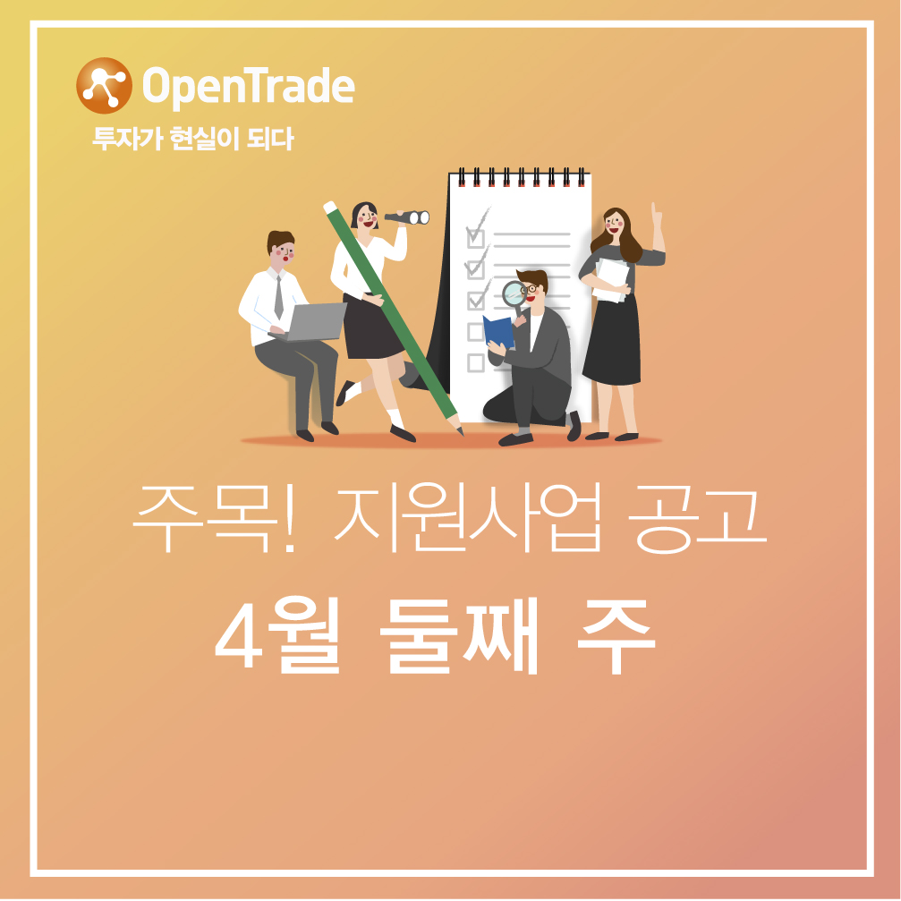 [스타트업 지원 프로그램] 2019년 4월 둘째 주, 주목해야 할 사업지원공고! 2019-04-09 11:04:44 안녕하세요. 오픈트레이드입니다.어느새 봄이 완연히 느껴지기 시작하는 4월의 둘째 주.스타트업이 주목해야 할 공고를 선별해왔습니다. 많은 분들께 힘이 되길 바랍니다!주소는 여기서 확인해주세요!https://otrade.co/timeline/startup/014339?select_menu=timeline-btn 오픈트레이드-와이앤아처, 업무협약 체결 2019년 4월 첫째 주, 주목해야 할 사업지원공고! 목록