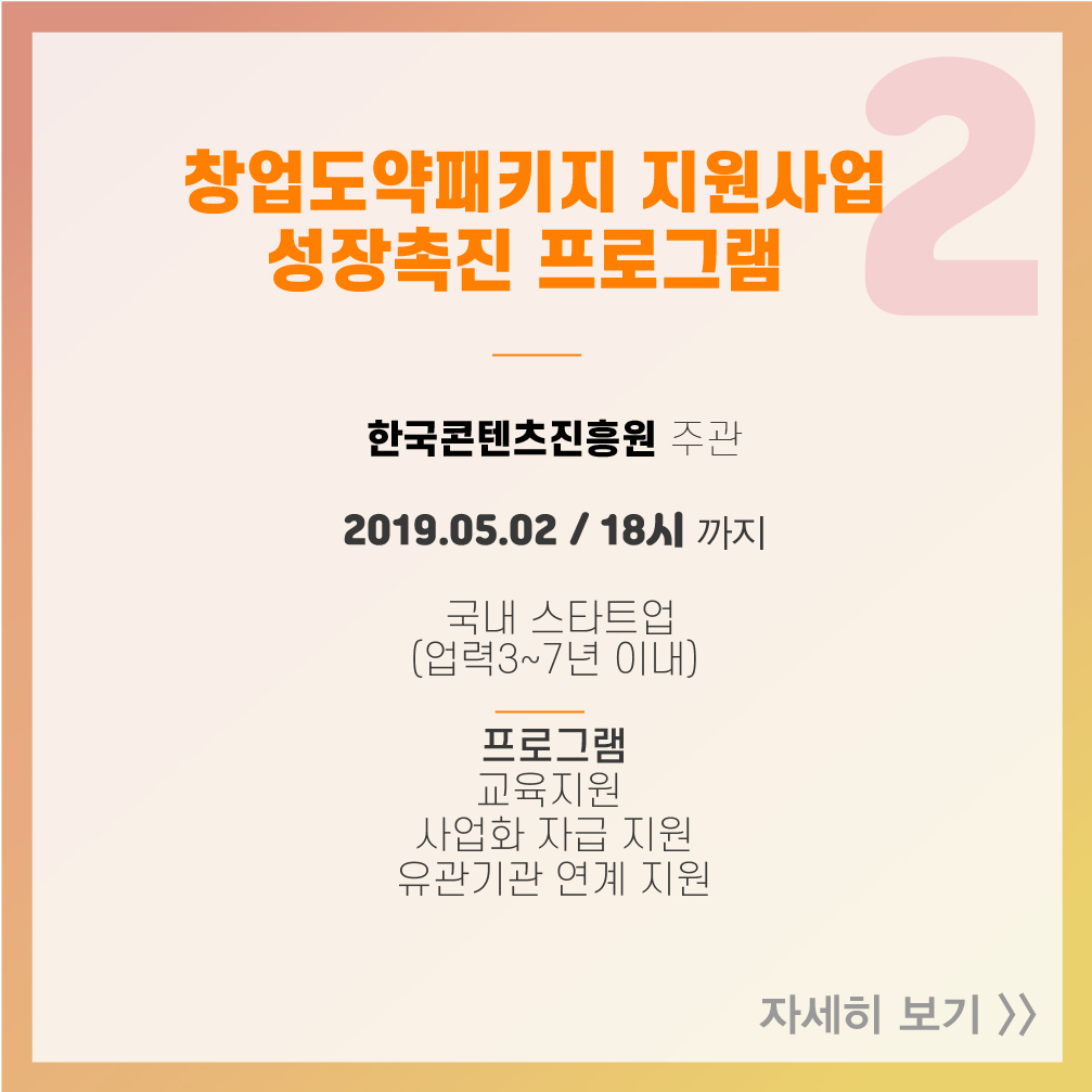 2. 2019년 창업도약패키지 지원사업 성장촉진 프로그램 창업기업 모집공고