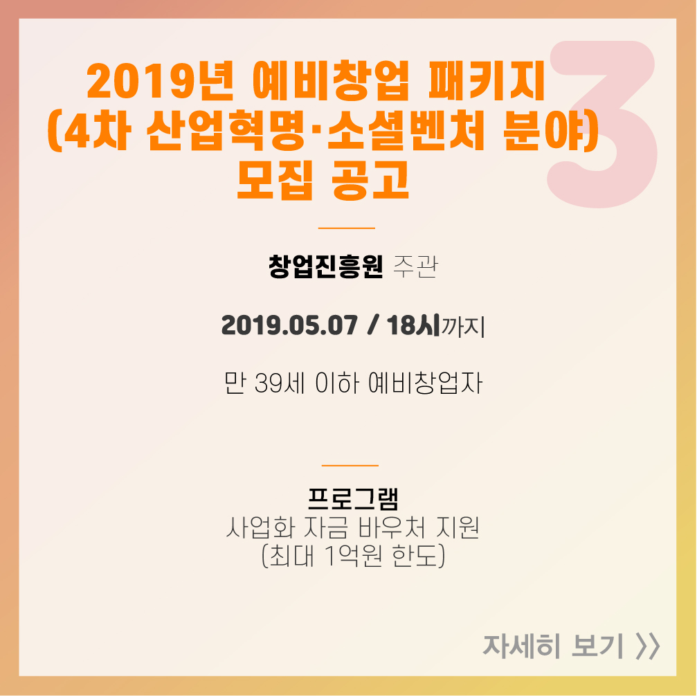 3. 2019년 예비창업패키지 (4차 산업혁명·소셜벤처 분야) 예비 창업자 모집공고
