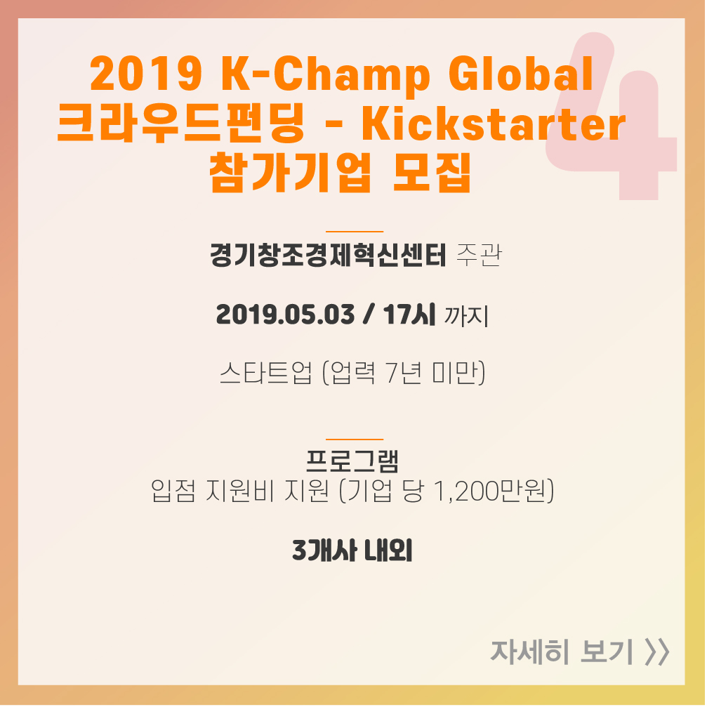 4. 2019 K-Champ Global 크라우드펀딩-Kickstarter 참가기업 모집