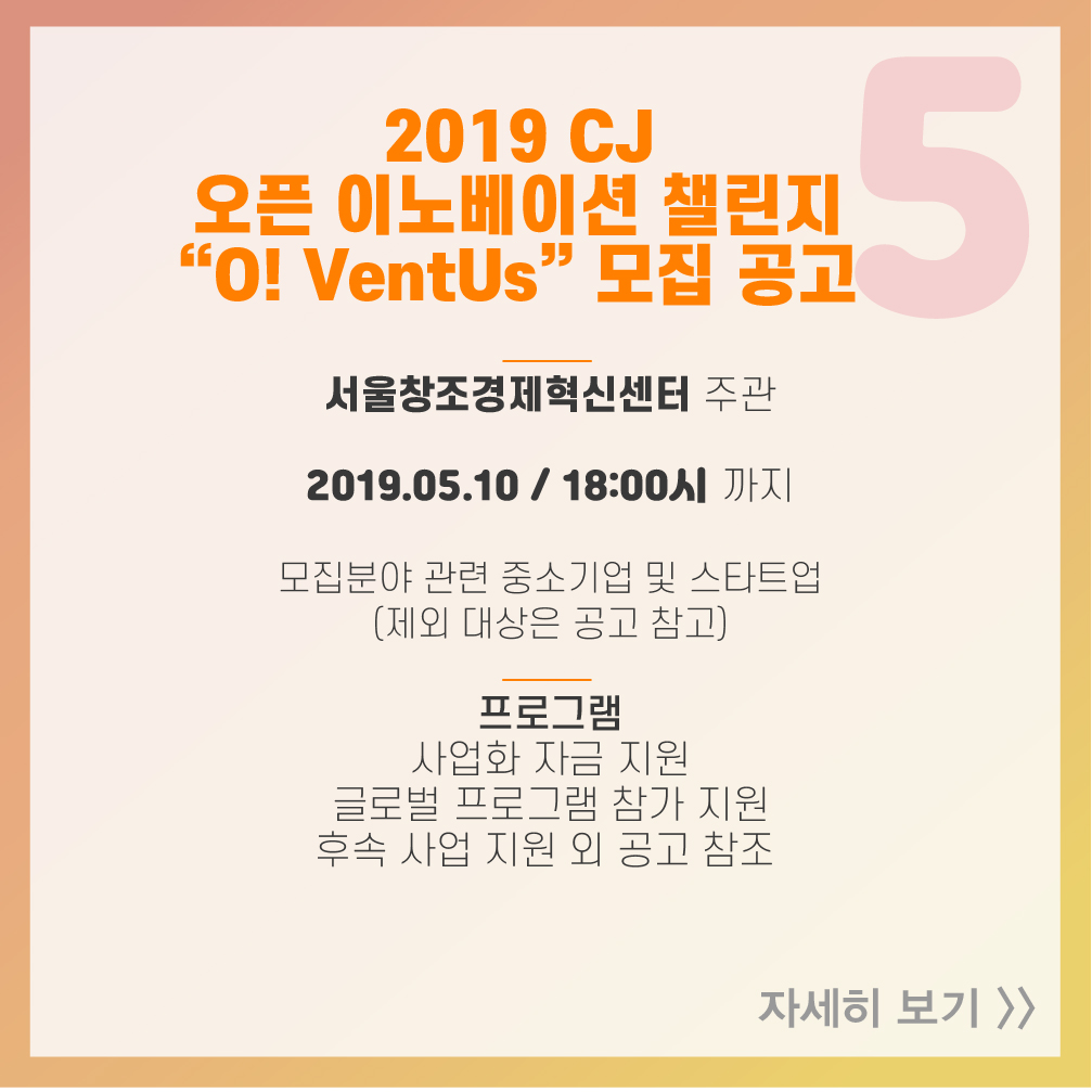 5. 2019 CJ 오픈 이노베이션 챌린지 “O! VentUs” 모집 공고