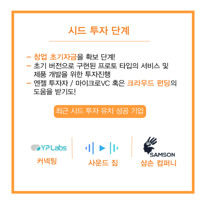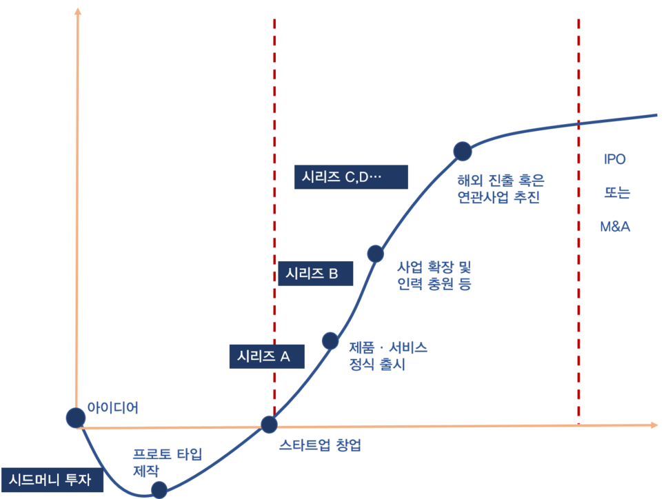 창업을 이제 막 시작한 스타트업은 언제나 사업자금에 목말라 있습니다. 세상에 아직 없지만 필요한 아이디어와 기술로 도전하는 이들에겐 더 멀리 날아갈 수 있는 날개가 필요합니다. 이때, 투자단계는 날개를 달아주는 천사, 엔젤투자자 및 벤처캐피탈 (VC)와 같은 개인 및 기관 투자자의 투자는 스타트업의 성장에 따라 달라집니다.